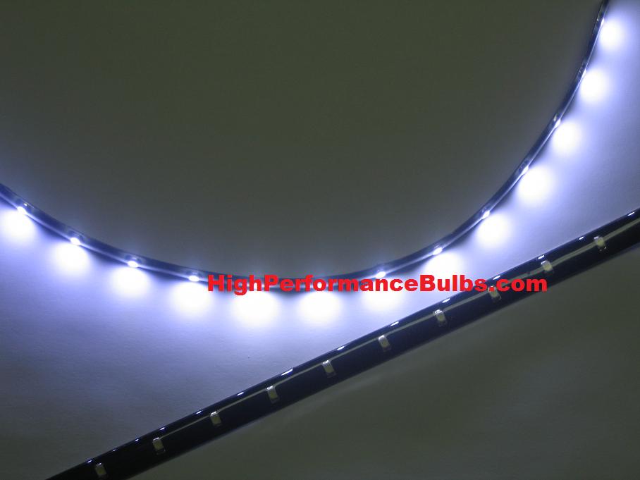 This flexible LED light strip can be mounted anywhere and has a 3M adhesive back that you can stick to headlights, bumpers, or any other place you want it! The LED light strip can be cut to any size you need it too. Now you can get the look of new Audi and Mercedes on your car or truck!