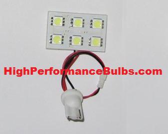Panel has 6 High Output SMD LEDs with a 194 style mini wedge bulb plug.