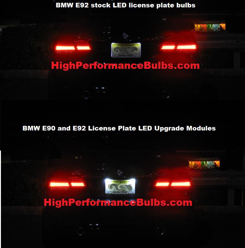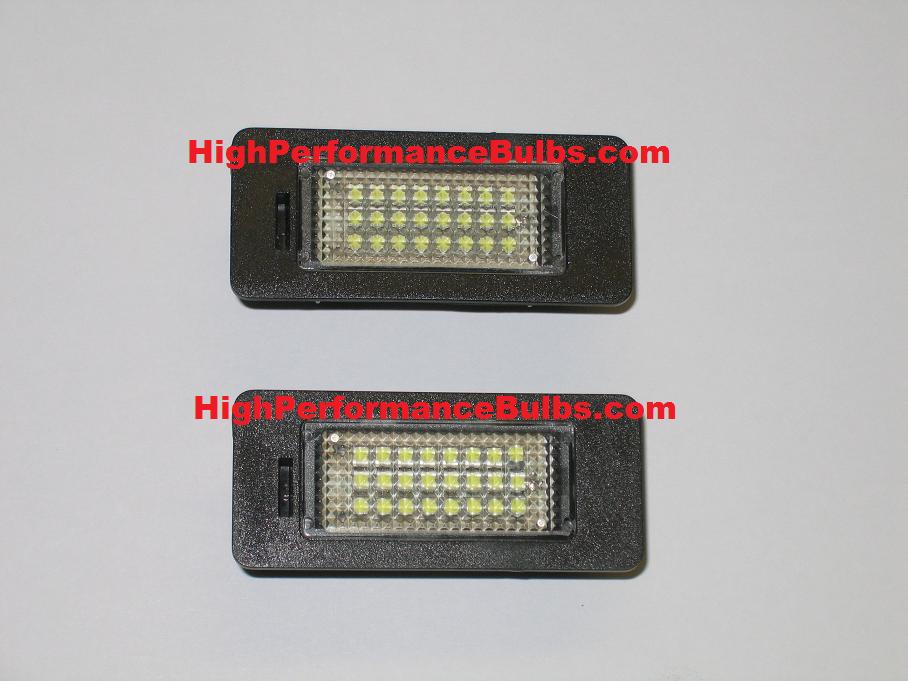 These 24 LED BMW LED License Plate Light Modules are the brightest available and are plug and play with many BMW models including BMW 1 Series E82 and E88, 3 Series E90, E91, E92 and E93, BMW 5 Series, X3, X5 and X6 models as well as several other BMW models. The BMW LED License Plate Light Modules have been tested to be 100% error free. The LED License Plate Light modules have a light diffuser over the LEDs that provides a uniform even light pattern so there are no strange shadows or bright spots, just even light output.