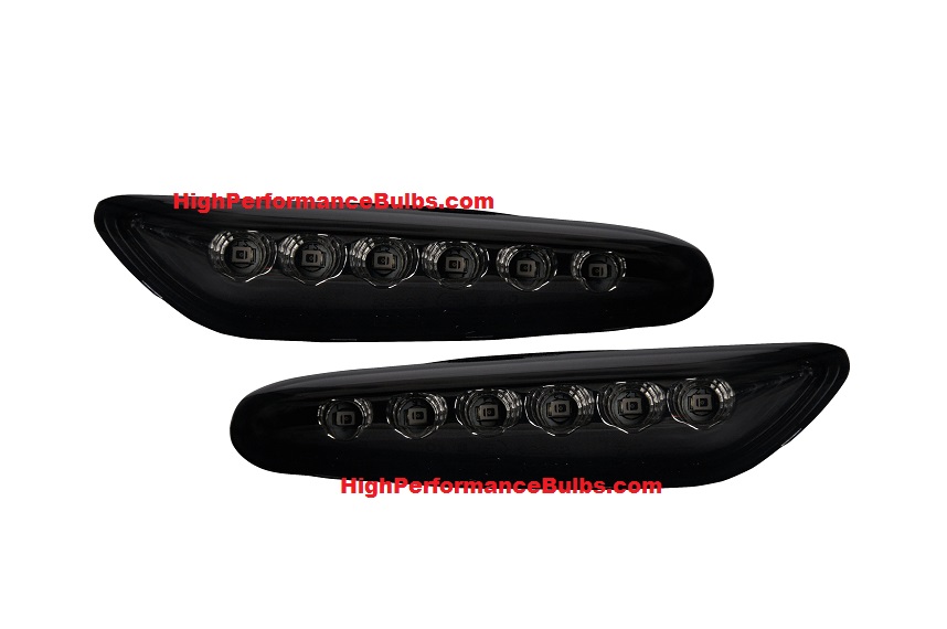 Upgrade your BMW 3 Series' stock dim LED side markers to our Smoked Lens 6 Super Bright Amber LED Side Markers for a unique stealth look!  With 6 super bright high quality LEDs, these smoked lens LED side markers will provide a unique look, while providing much higher visibility when turning, day and night.  The unique design will provide your BMW 3 Series with a custom look and will match darker color vehicles or stand out on lighter color and especially white vehicles with dark colored or black accents.  With 6 super bright amber LEDs and faceted chrome reflector, these LED Side Markers provide significantly more light output and a higher viewing angle from all directions, providing a safer more visible light output.