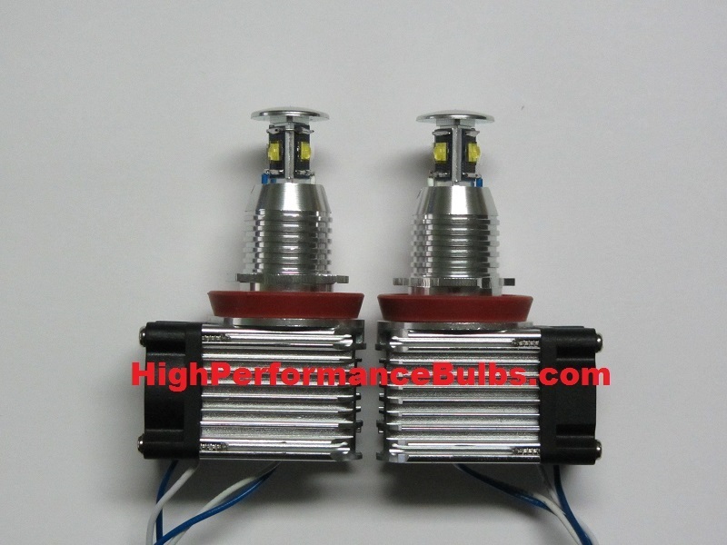 This new 60W H8 BMW LED Angel Eyes design also keeps the bulb compact, so they more easily fit inside the housing, making install easier then bulky large heat sinked designs. The LEDs are placed closer together in this new H8 LED Angel Eyes design, maximizing light input into the angel eyes light pick ups. This close proximity of the LEDs increases the intensity of the light that enters the angle eyes rings thus further increasing output.