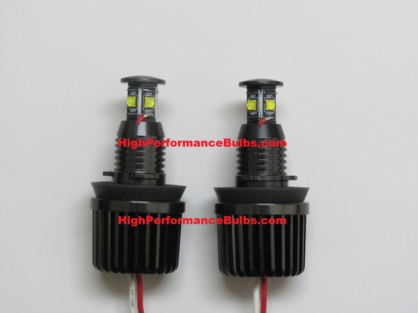 Using 4 new larger wide angle High Power LEDs on each BMW H8 Angel Eyes bulb aimed directly at the light pickups, these direct replacement high output H8 LED Angel Eyes upgrade modules are whiter then stock and will match the color of the BMW HID lights giving your BMW a unique and modern look!