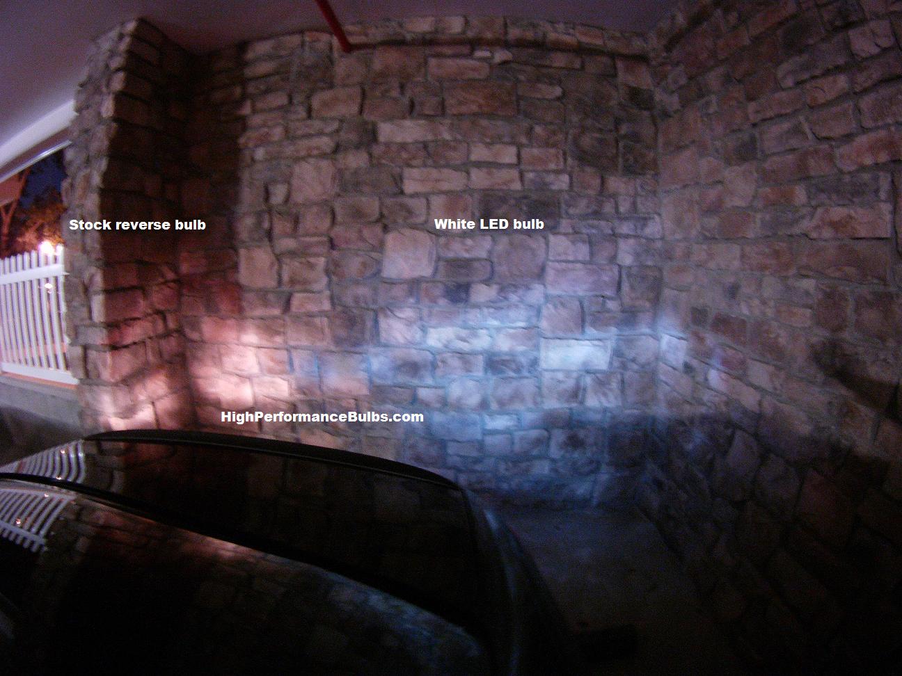 Replace your dull yellowish reverse bulbs with our Bright White LED reverse bulbs. These LED bulbs are brighter then the stock bulbs, provide a wider spread of light and have that distinctive brilliant white light you are looking for. Unlike projector style LED bulbs these LED bulbs do not project the light output incorrectly and provide a uniform wide pattern. These may not work on some 06-07 models that have the oversensitive computer parameters.