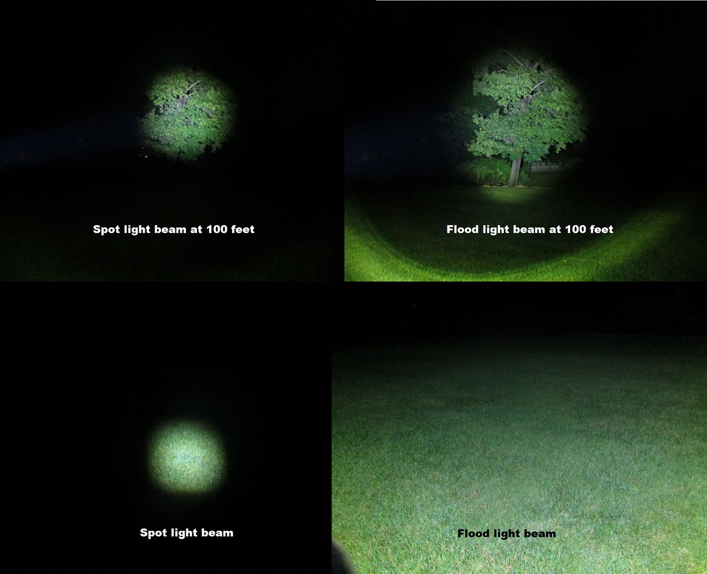 <----Click picture to view the LED flashlight's spot light vs flood light patterns!
