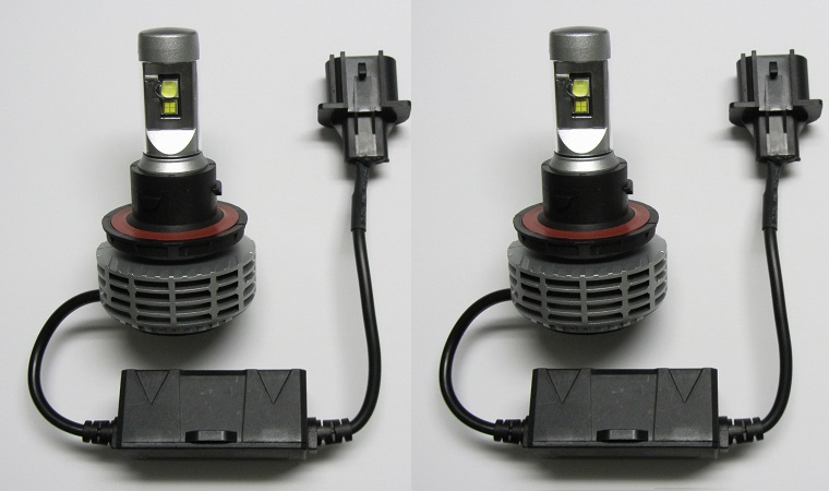 Each H13 LED bulb has 2 CREE LED emitters for the low beam and 2 brighter Philips LEDs for the high beam, to provide maximum light output with a full spread of light. Each H13 LED bulb has an integrated heat sink and controller to maximize cooling of the H13 LED bulb so the LEDs can function at maximum output.