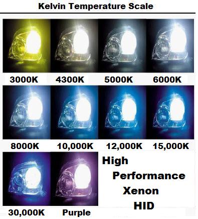 Replacement colors available: 3000K, 4300K, 6000K, 10,000K, 15,000K, 30,000K and Purple.
