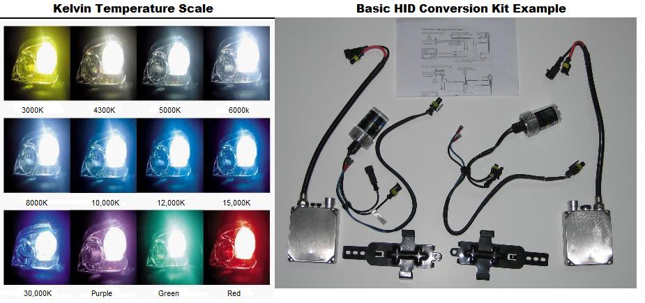 Upgrade your car's headlights and fog lights to the ultimate in lighting technology! High Intensity Discharge lighting is found in all the newest high end cars, trucks and SUVs! Now you can have that same technology. HID is up to 4 times brighter then standard halogen bulbs and even aftermarket halogen bulbs. HID bulbs also do not have fragile filaments that can break or burn out! HID bulbs last for many years and rarely need replacing. No more burnt out bulbs! HID’s also use less power then standard and aftermarket Halogen bulbs drawing only 35 watts of power while providing on average 300% more light. No more melted or heat damaged harnesses from using high wattage halogen bulbs to get extra light!