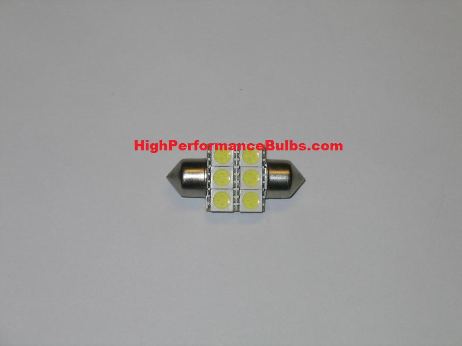 HPX 3175 White LED Festoon bulb with 6 High Output LEDs (also fits DE3175, 3021, 3022, 6428) Part # 31HO6