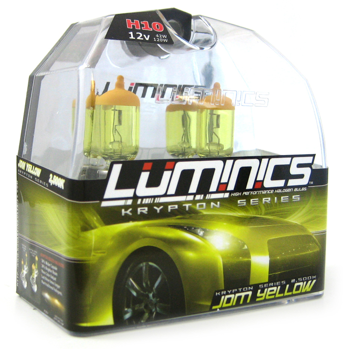 Luminics Krypton JDM Yellow headlight bulbs have a 30% larger glass envelope which in turn produces 30% more light output with a 30% increase in color depth. They are a great choice for improved lighting performance, foul weather driving, increased vision, and the JDM Yellow light produced by these bulbs will give your car the HID look of high-end european cars.