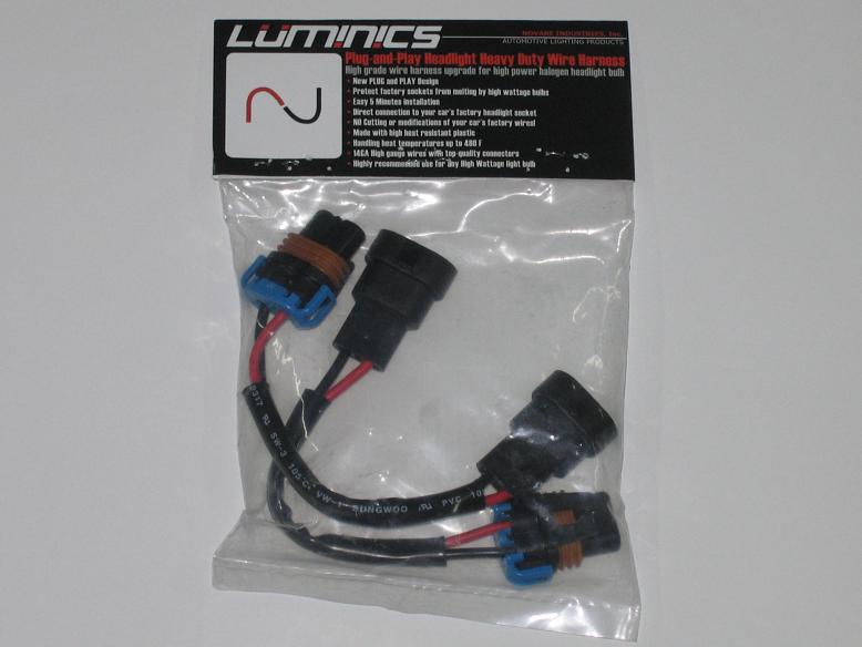 Protect your cars stock lighting harness with the Luminics Plug and Play Wire Harness! Made with heavy gauge wire and high temperature plastic connectors to take the heat from high output bulbs! No cutting of wire is necessary! just plug them in to your stock harness and then plug them into the bulbs and you are done!