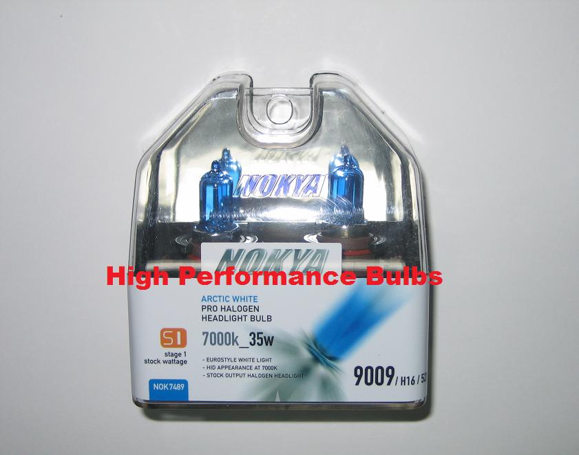 Get the HID appearance and improved visibility without the HID price! Nokya Arctic White Stage 1 and Stage 2 bulbs are a high output halogen headlight upgrade. They give you the European white light (euro style) seen on most import cars. These bulbs improve driver visibility and awareness by producing a whiter light then conventional halogen bulbs. The light produced is at the 7000K range which is very close to light produce by the sun. These bulbs are a direct replacement for stock bulbs.