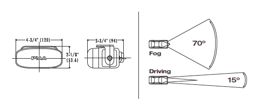 The PIAA 2100 XT Xtreme White Plus Fog Lamp Kit Lamps measure 4 3/4" wide x 2 1/8" high x 3 3/4" deep