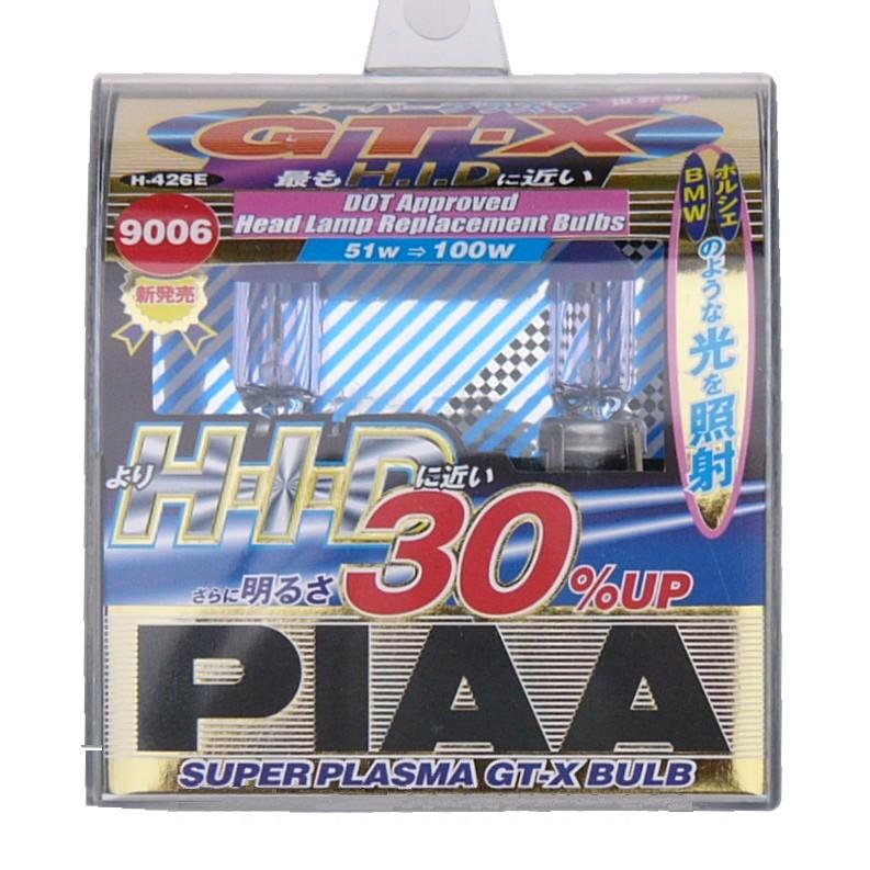Another addition to PIAA's stable of high performance halogen bulbs is the PIAA Super Plasma Gt-X 9006. The Super Plasma GT-X 9006 bulbs provide an exclusive purple low beam. PIAA has added a Purple coated top coating giving the headlights a purple look even when the lamp is off!